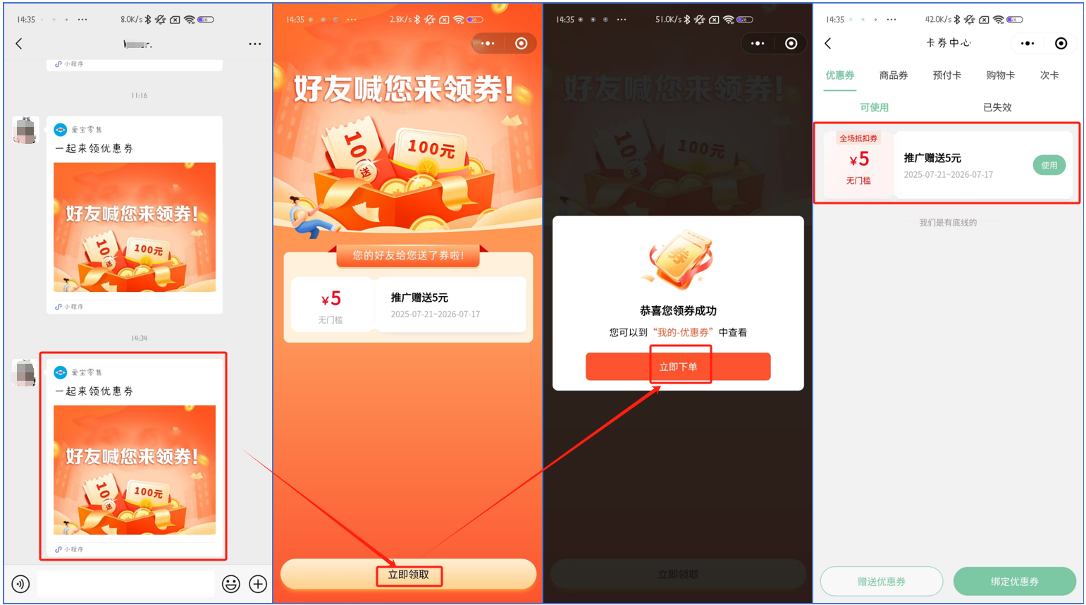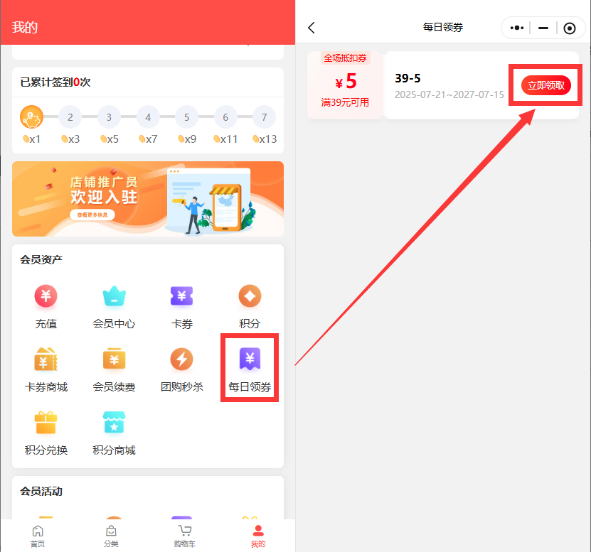 会员先领取可赠送的优惠券(根据优惠券发券渠道获取)
