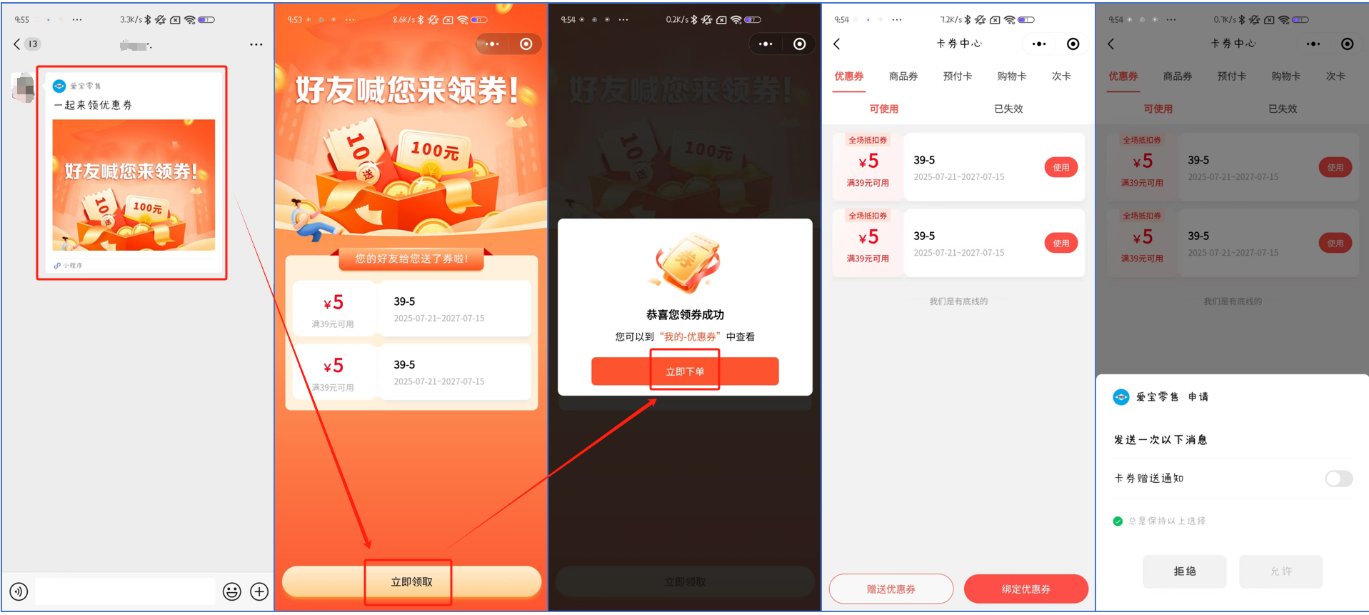 优惠券只能赠送一次,好友领取的赠送优惠券无法二次赠送