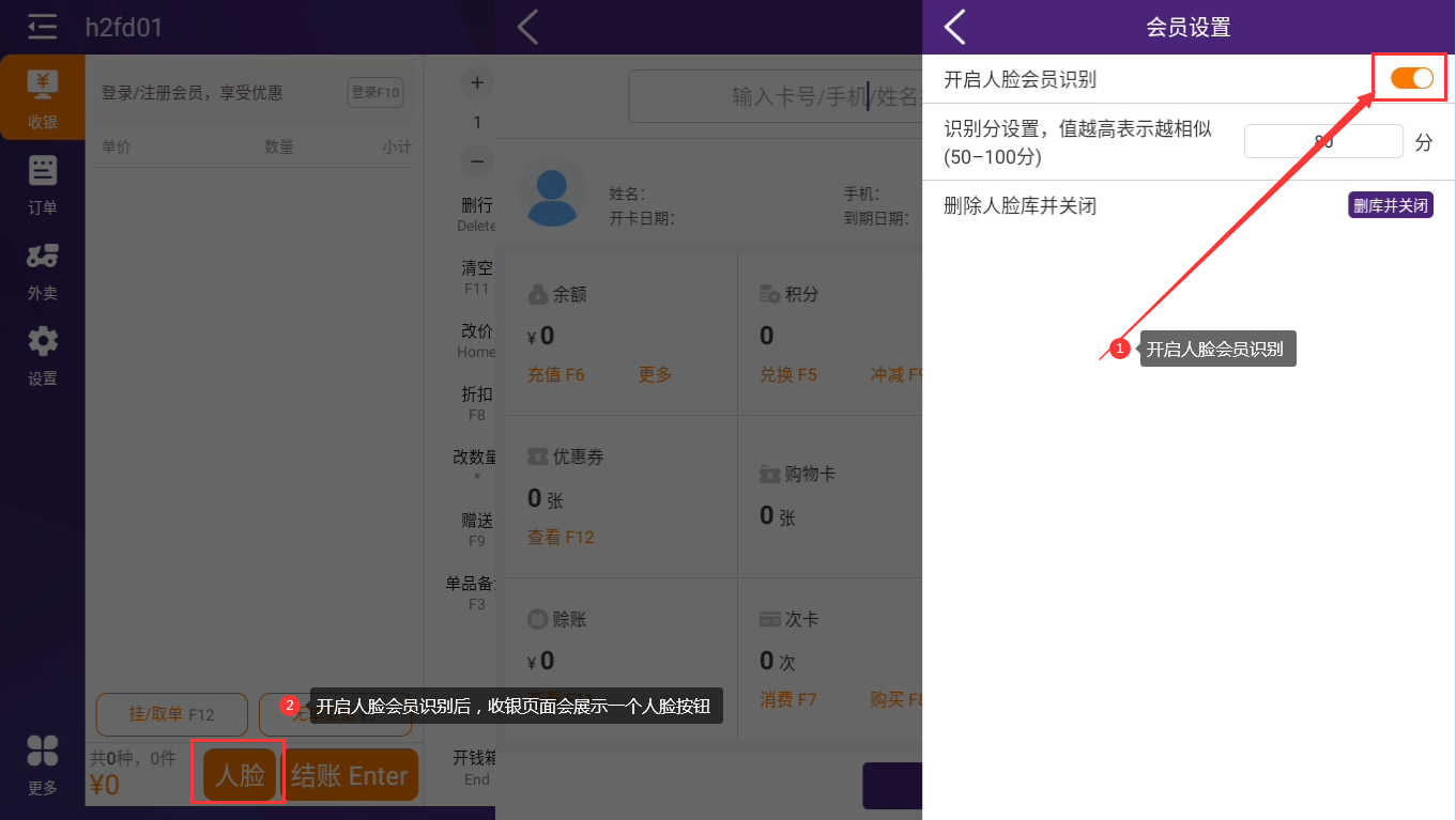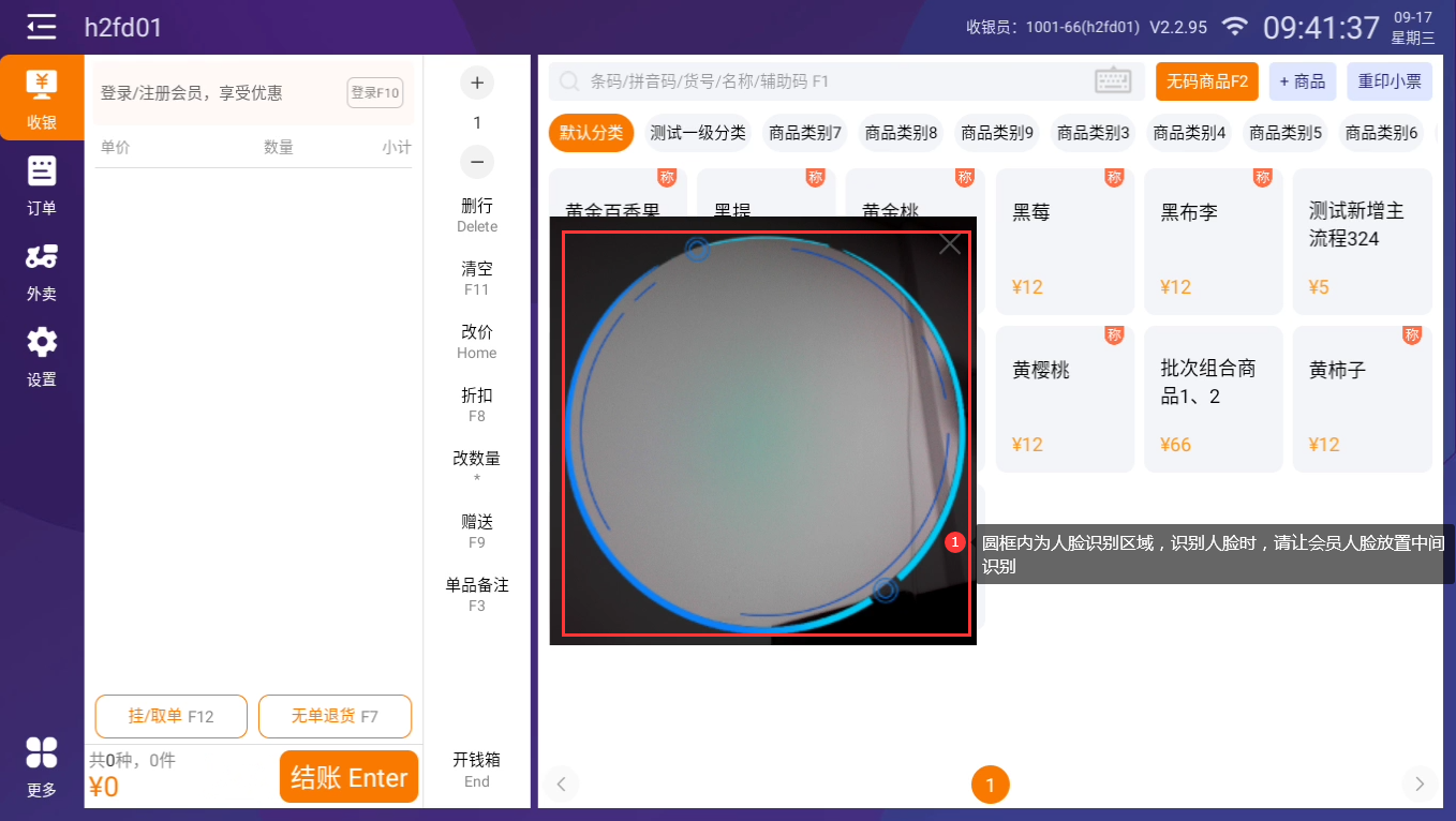 2.返回收银页面,点击人脸按钮(图11),即可识别已录制人脸的会员;