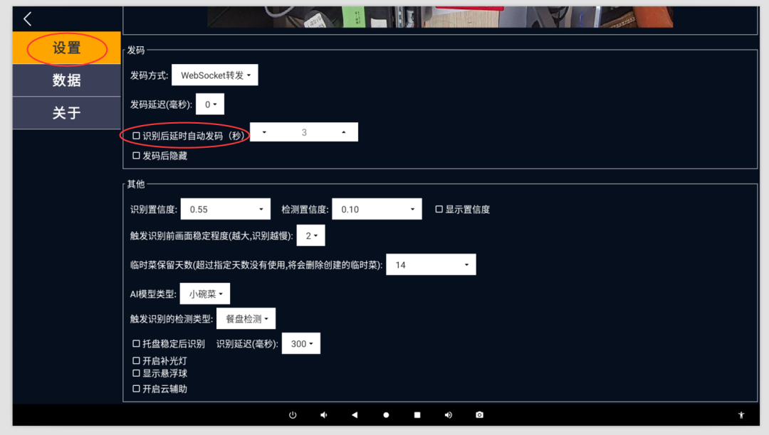 打开【菜品识别插件】-【设置】把【识别后延时自动发码】打勾即可。