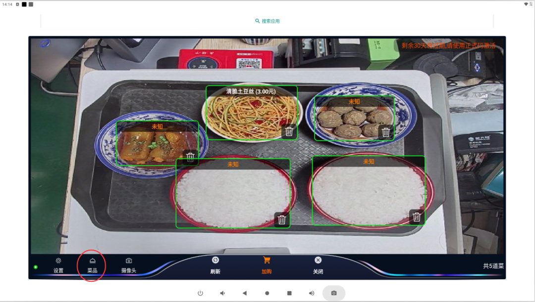 把菜品放到结算区上,打开【菜品识别插件】-点击对应菜品方框上的【未知】字样,进入选择该菜品对应的菜品名,选择完菜品名后返回到识别区即表示学习完成。
