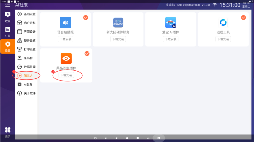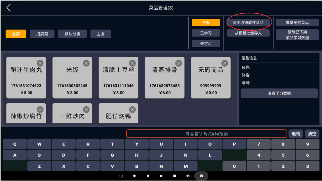 打开【菜品识别插件】-点击【菜品】-点击【同步收银软件菜品】。