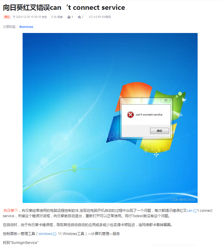 不是软件报的错,是向日葵提示的