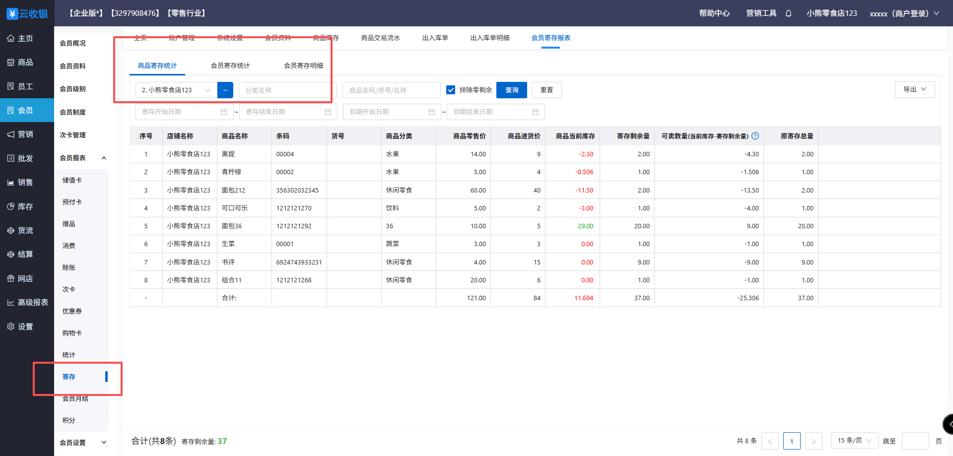 应用场景:会员寄存商品在门店,过后去门店取回寄存的商品