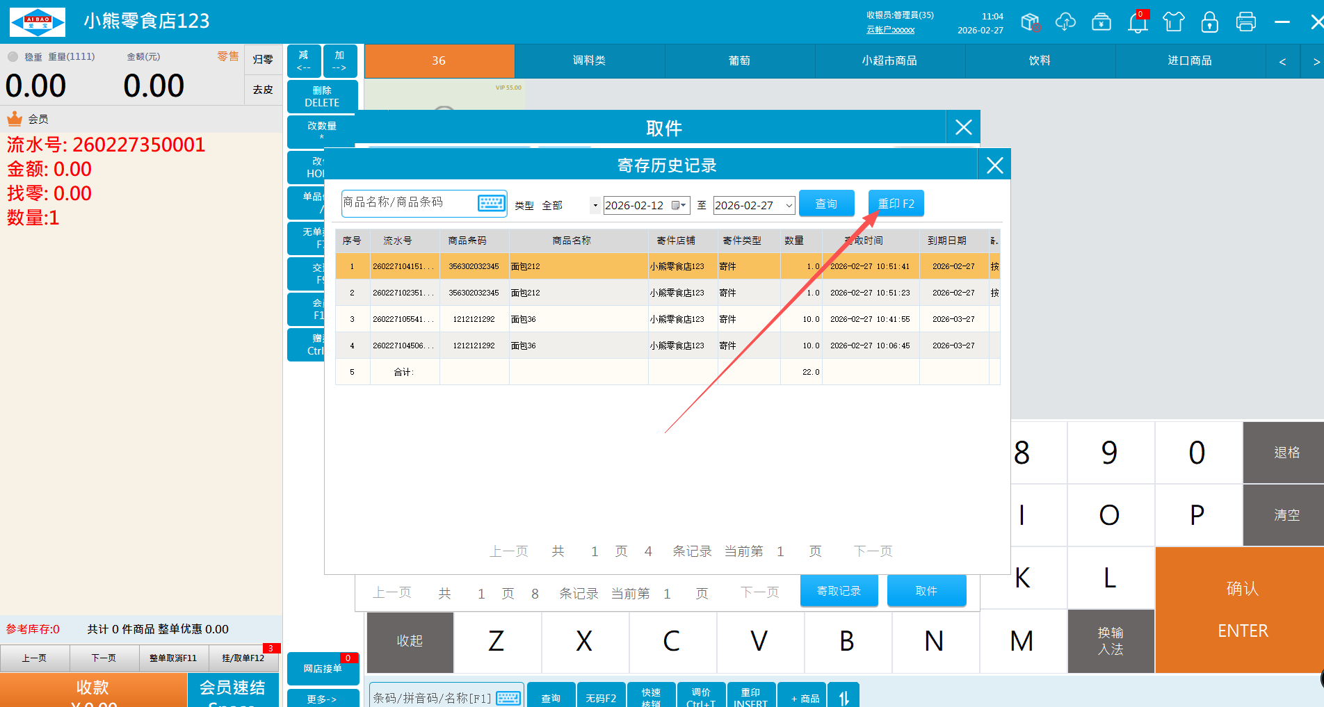 3、取件记录查看及重印寄存单