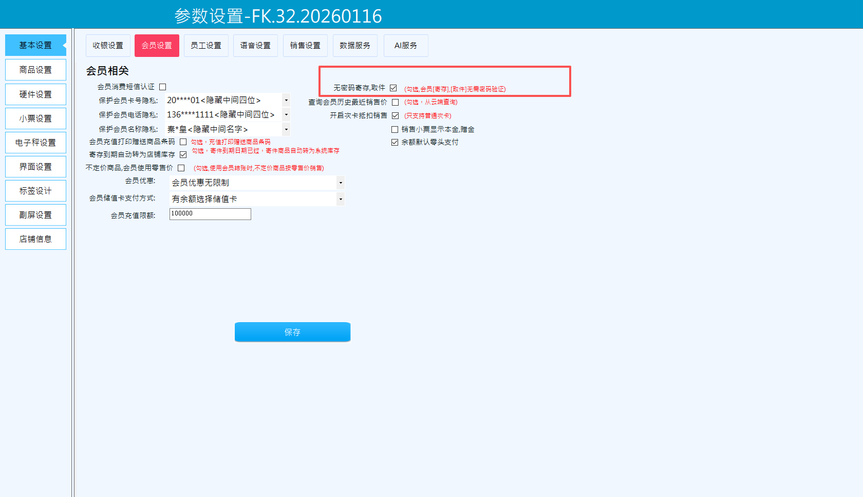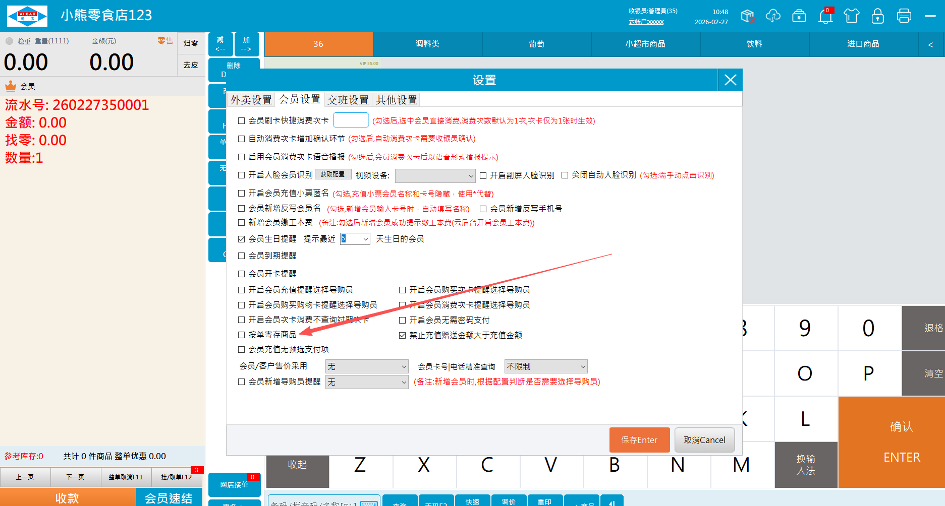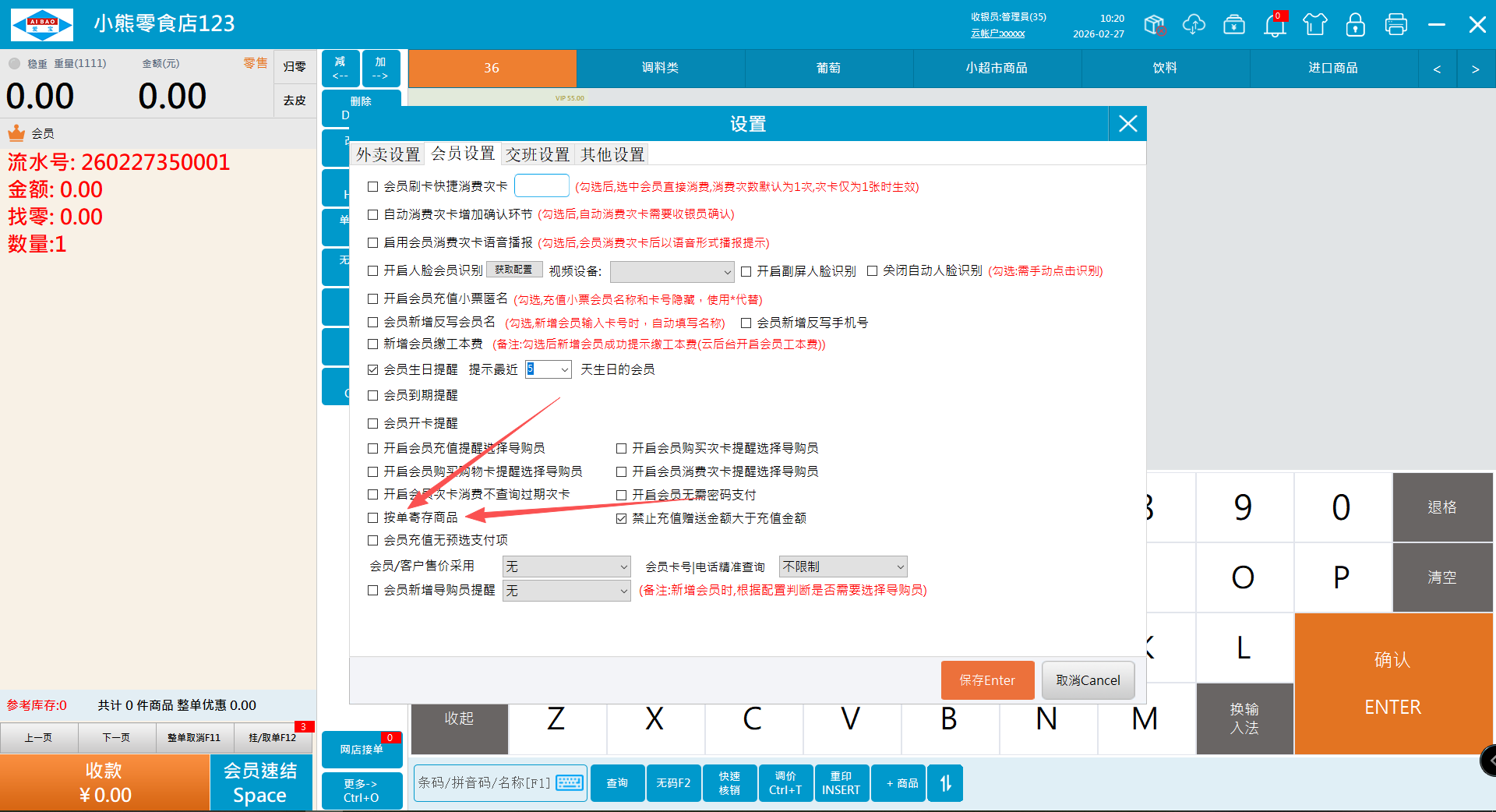 1.2、按会员销售单寄存,设置按单寄存